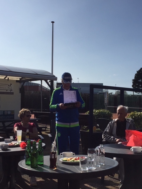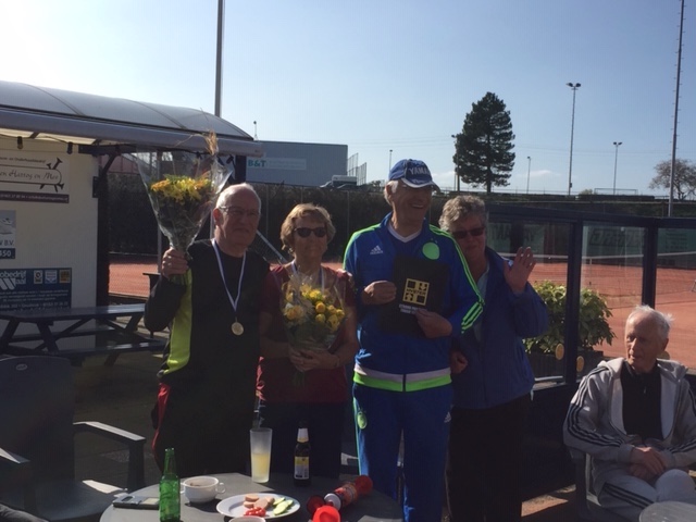 Een gezellig samenzijn op het terras met drankjes, hapjes en praatjes van Herman, Greet en Diana kwam dit openingstoernooi weer tot een einde.